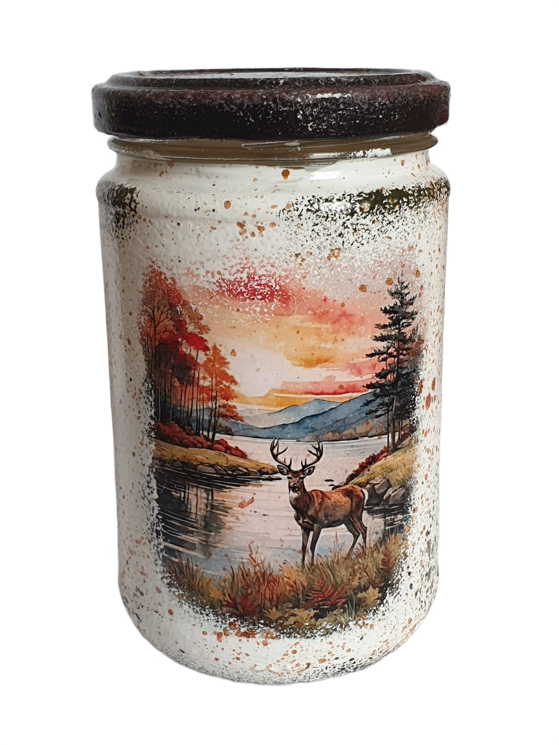 Lumânare parfumată în borcan decorat manual – aromă Aromatic Wood