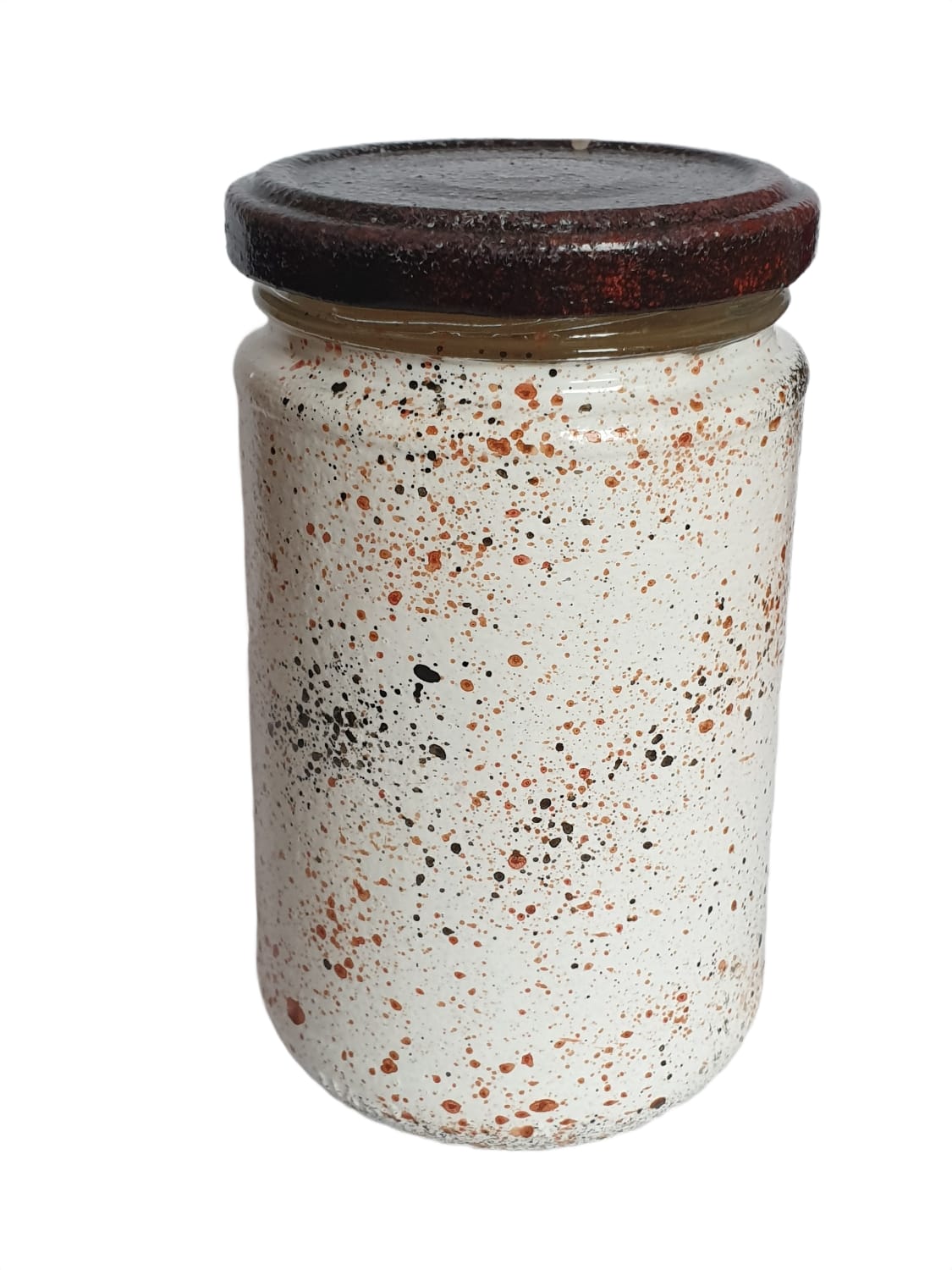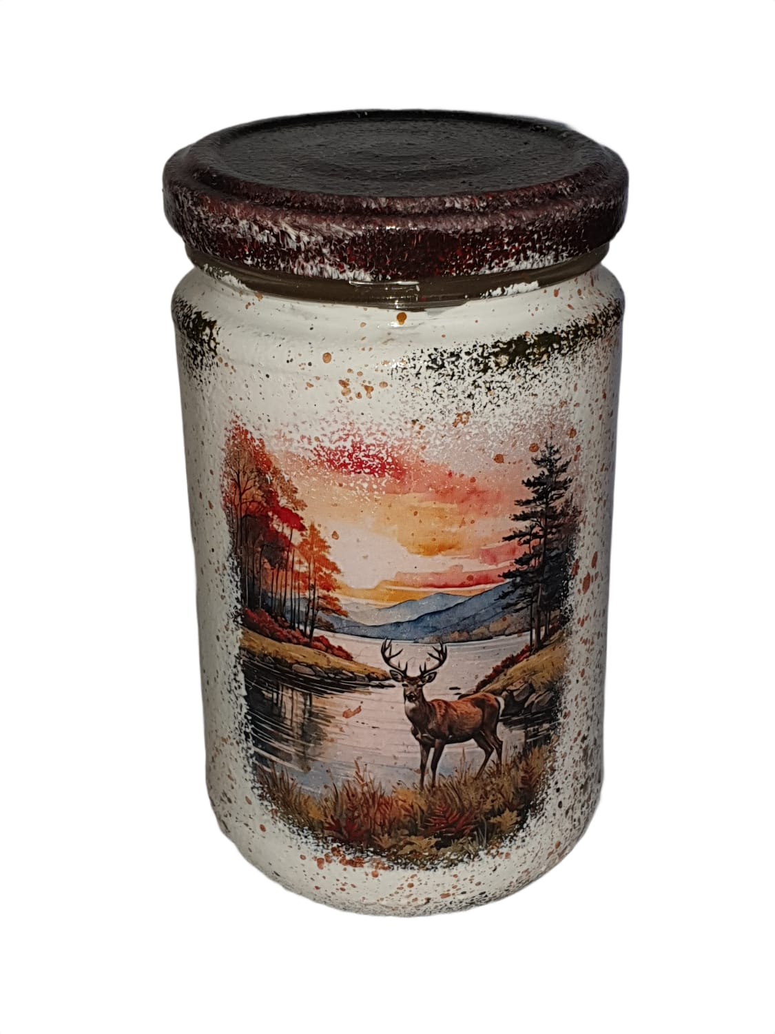 Adaugă un plus de eleganță și rafinament spațiului tău cu această lumânare parfumată, turnată cu grijă într-un borcan decorat manual. Fiecare borcan este realizat cu atenție la detalii, oferind un aspect unic, artizanal, care transformă lumânarea într-un element decorativ deosebit.