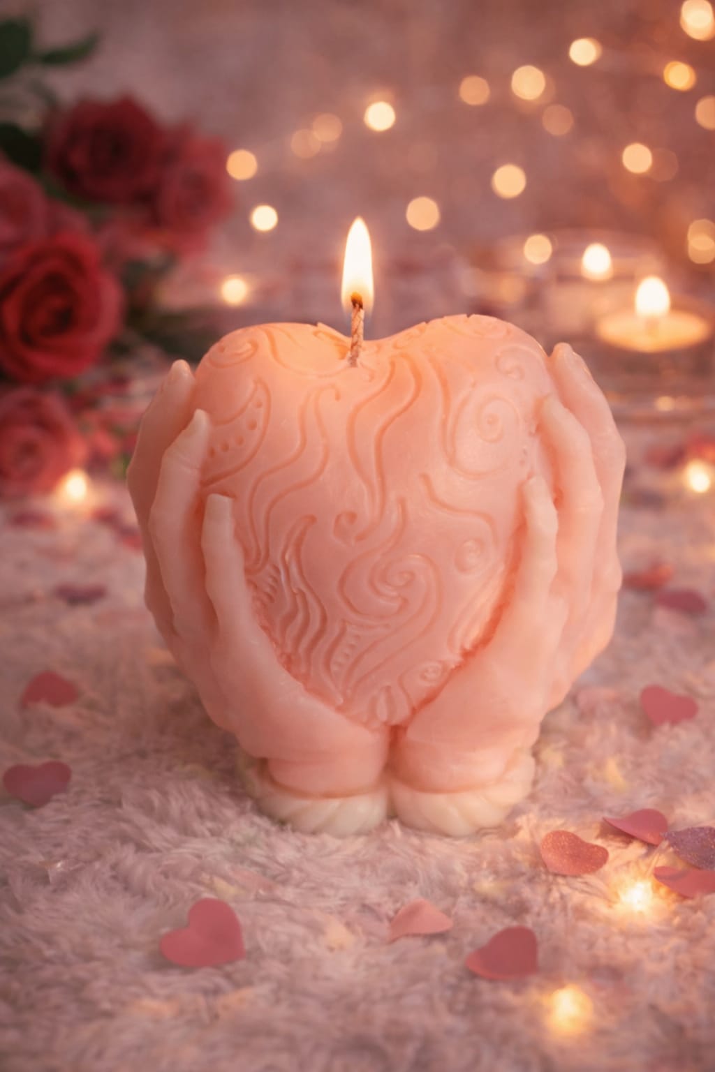 O lumânare delicată și simbolică, realizată manual din ceară naturală de soia, ce reprezintă o inimă protejată de două mâini. Designul transmite căldură, grijă și iubire, fiind un simbol perfect al legăturilor profunde dintre oameni.